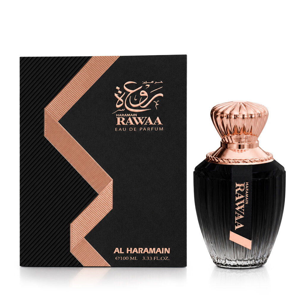 Rawaa marki Al Haramain Perfumes to orientalno-waniliowe perfumy dla kobiet, wprowadzone na rynek w 2018 r. Zapach otwiera się słodkimi i rozgrzewającymi nutami migdałów i bogatej kawy, tworząc przyjemne i smakowite otwarcie.