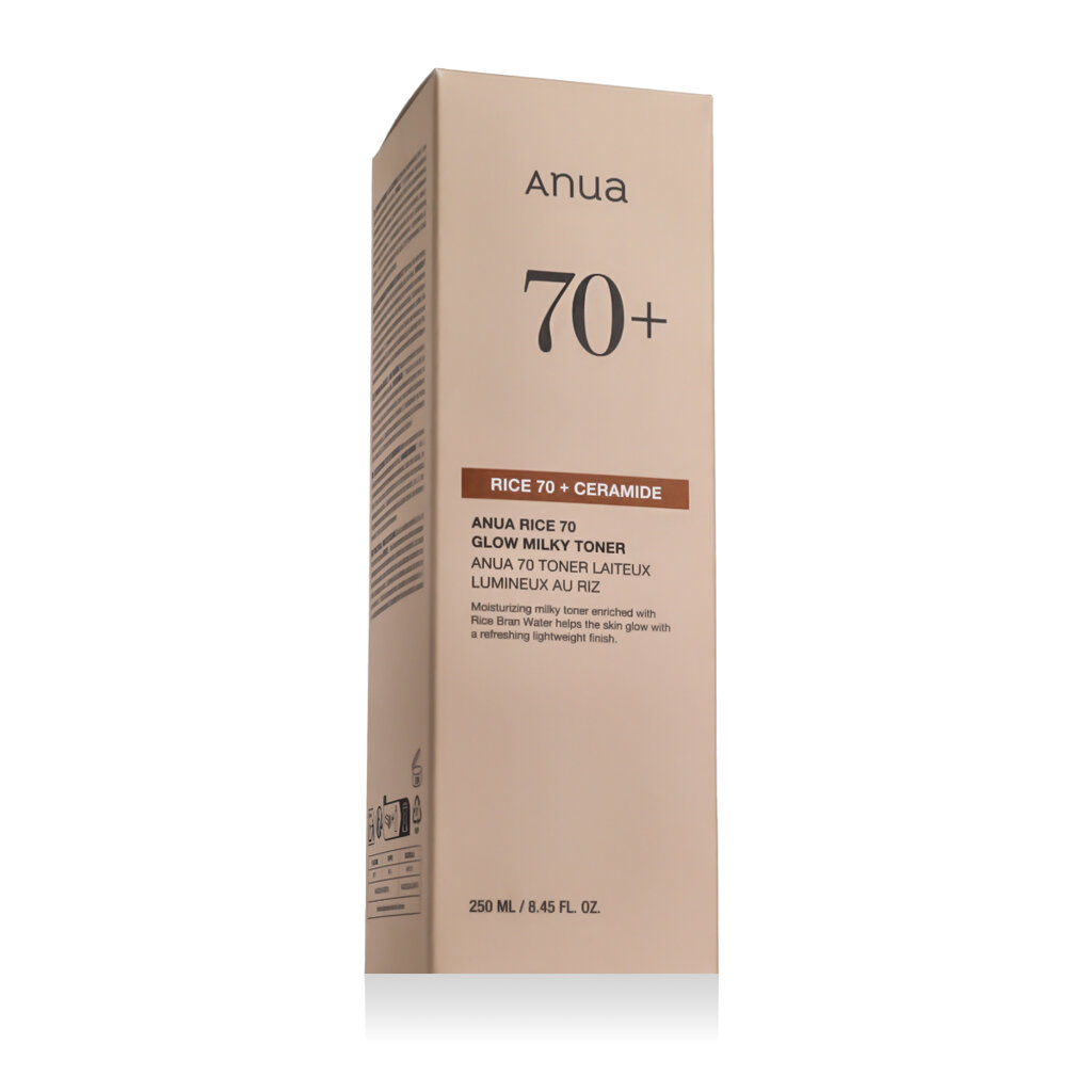 Anua Rice 70 Glow Milky Toner to delikatny mleczny tonik z ekstraktem z ryżu, który zapewnia intensywne nawilżenie, rozjaśnienie i odżywienie bez pozostawiania lepkiej warstwy. Dzięki hydrolatom ryżowym (70%) i ekstraktowi z ry żu jest bogaty w witaminy B i E, które promują zdrowy wygląd skóry, regenerację i ogólne ukojenie skóry. Lekka konsystencja zapewnia efekt "szklanej skóry", czyli wygląd idealnie gładkiej, świeżej i promiennej skóry. Idealny dla skóry suchej, matowej, wrażliwej lub zmęczonej.