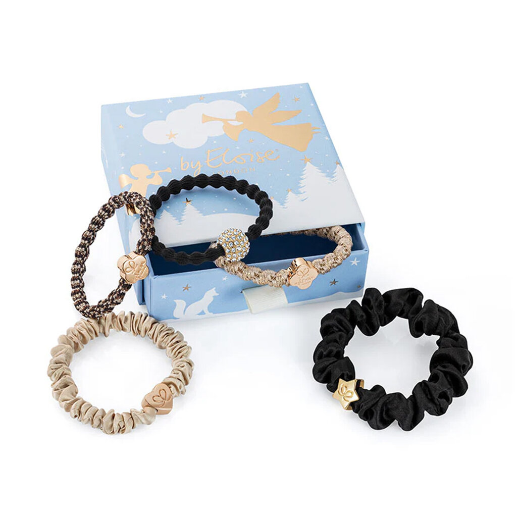 Podobnie jak pojedyncze gumki byEloise, zestawy te łączą w sobie funkcjonalność i styl. Mocno trzymają włosy bez ciągnięcia, a także mogą być noszone jako stylowa opaska na rękę. Świetny wybór dla tych, którzy chcą pozwolić sobie na większą różnorodność lub szukają idealnego prezentu.