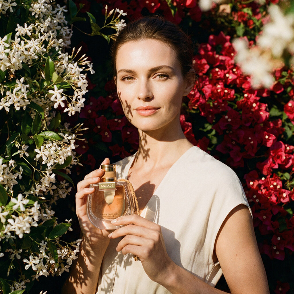 Nomade Eau de Parfum Jasmin Naturel koncentruje się na jaśminowym sercu. Esencja bergamotki przenika zapach, podczas gdy subtelna nuta akordu daktylowego uzupełnia nieodparty blask egipskiego absolutu jaśminu. Wanilia i drzewo sandałowe tworzą ciepłą i uzależniającą bazę.