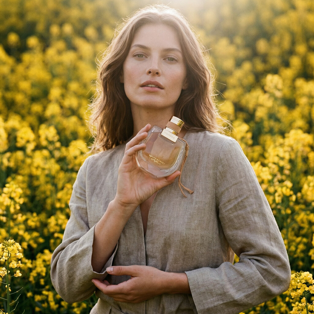 Emblematyczny flakon Nomade został przeprojektowany w inspirowanych naturą odcieniach ochry. Warkocz zawiązany wokół szyjki butelki reprezentuje więzi utkane podczas podróży i ciągłych spotkań. Ten symboliczny motyw jest również wygrawerowany w szkle.