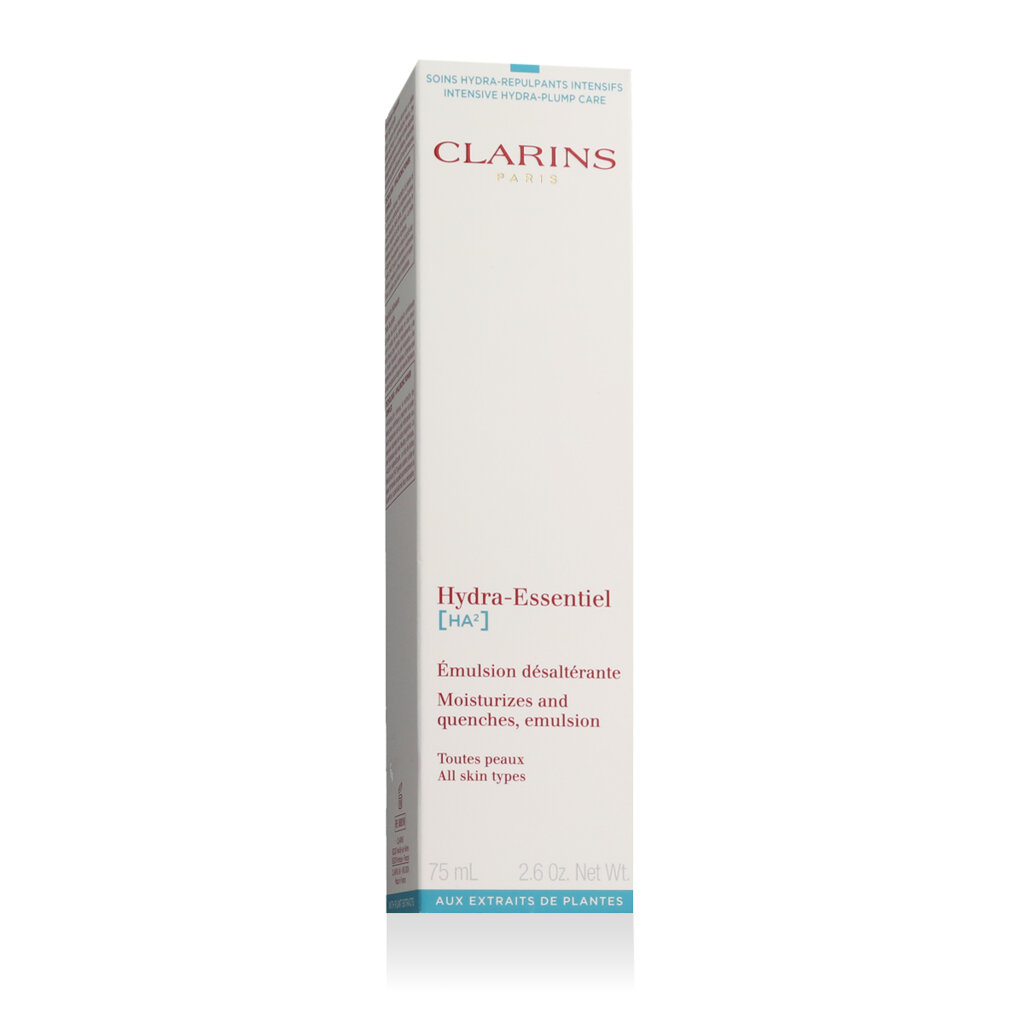 Clarins Hydra-Essentiel [HA²] Moisturizes and Quenches Emulsion 75 ml to lekka, intensywnie nawilżająca emulsja do skóry odwodnionej, która przywraca optymalny poziom nawilżenia i pozostawia skórę świeżą, miękką i promienną. Dzięki podwójnej mocy kwasu hialuronowego [HA²] i organicznego ekstraktu z liści życia pomaga skórze zatrzymać wilgoć i wzmacnia jej naturalną barierę nawilżającą.