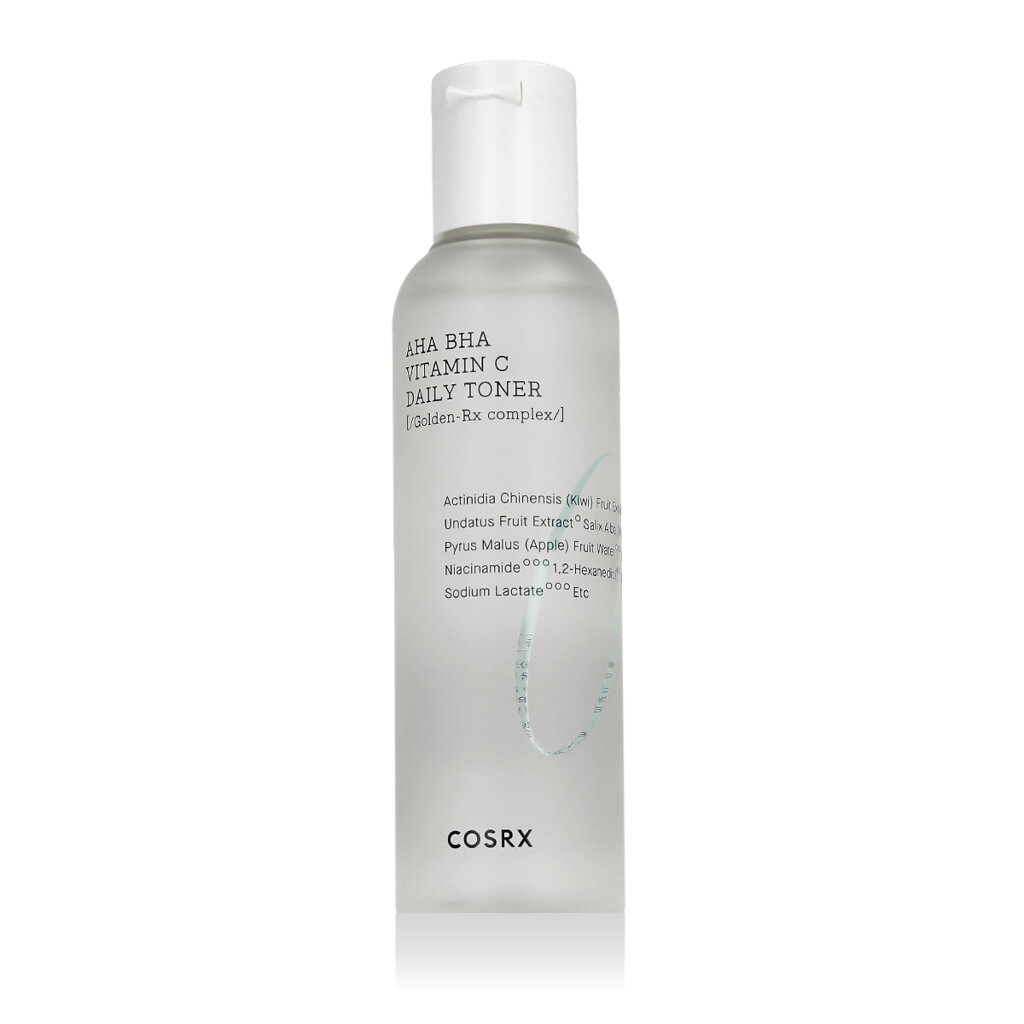 COSRX AHA/BHA Vitamin C Daily Toner 150 ml to delikatny tonik do twarzy, który łączy złuszczające kwasy AHA i BHA z witaminą C w celu regularnego nawilżania, rozjaśniania i poprawy tekstury skóry. Produkt ten został zaprojektowany w celu usuwania martwych komórek naskórka i promowania bardziej równomiernego kolorytu skóry, jednocześnie łagodząc i przygotowując skórę do kolejnych etapów pielęgnacji.