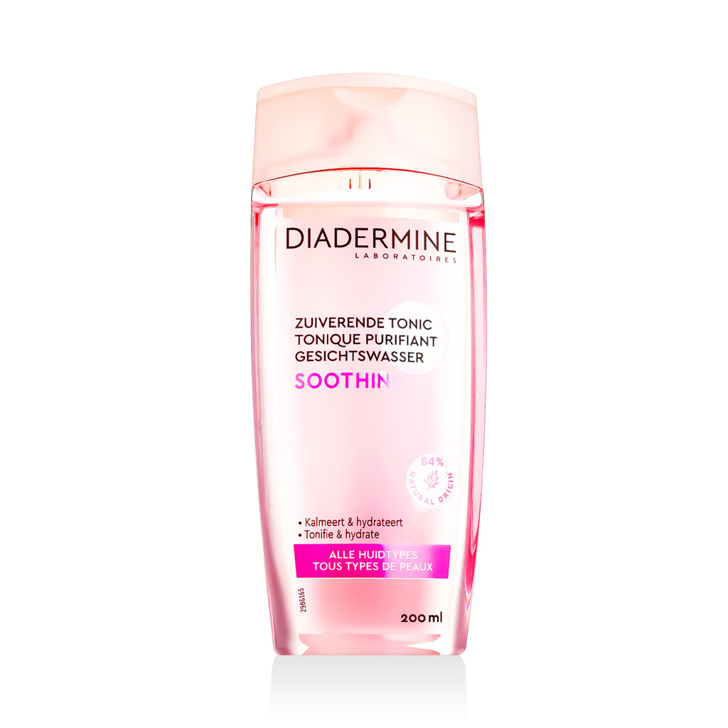 Diadermine Laboratoires Soothing Tonic 200 ml - tonik do skóry to delikatny, łagodzący tonik przeznaczony do skóry wrażliwej i suchej, który skutecznie usuwa zanieczyszczenia i makijaż, nie naruszając naturalnej równowagi skóry. Wzbogacony o składniki nawilżające i łagodzące, tonik odświeża, tonizuje i przygotowuje skórę do kolejnego etapu pielęgnacji.