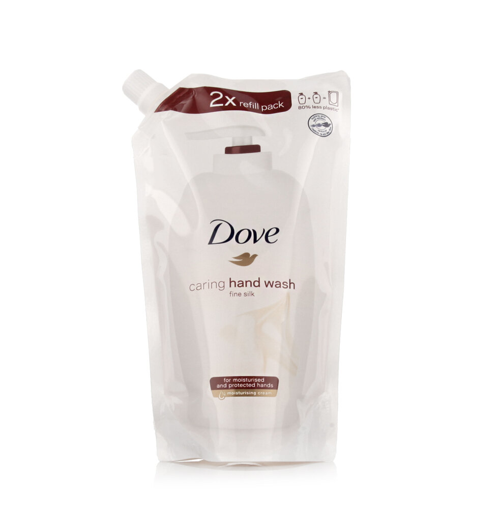 Z Dove Fine Silk Caring Hand Wash (Refill Pack) możesz cieszyć się jedwabiście miękkimi i pięknie pachnącymi d łońmi przy mniejszym wpływie na środowisko.