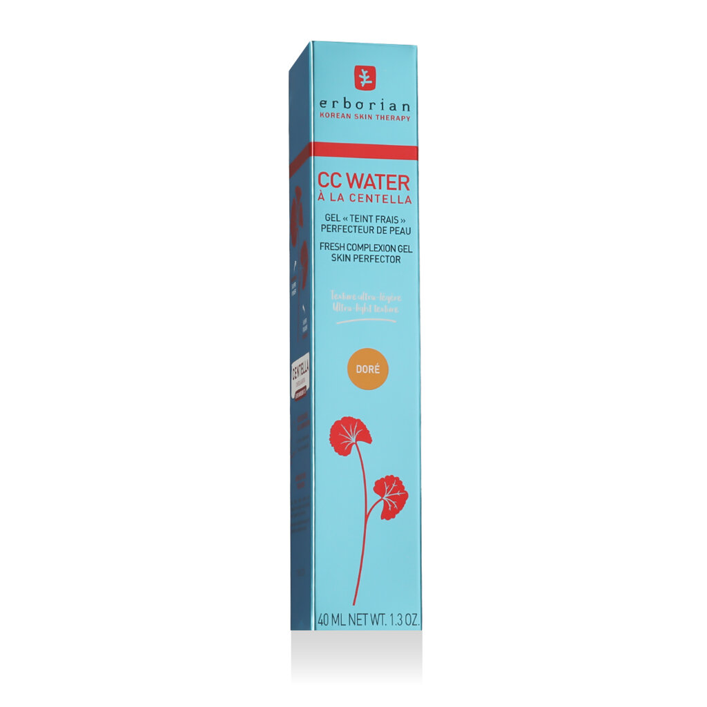 Erborian CC Water Fresh Complexion Gel Skin Perfector (Doré) - Tinted Brightening and Unifying Gel (40 ml) to rewolucyjny żelowy krem CC, który zapewnia ultralekkie krycie, intensywne nawilżenie i natychmiastowy efekt rozświetlenia. Ten odświeżający żel z technologią "water-burst" przekształca się w nawilżającą wodę z pigmentami, które dostosowują się do skóry podczas aplikacji. Odcień Doré jest idealny dla karnacji od średnio ciemnej do oliwkowej.