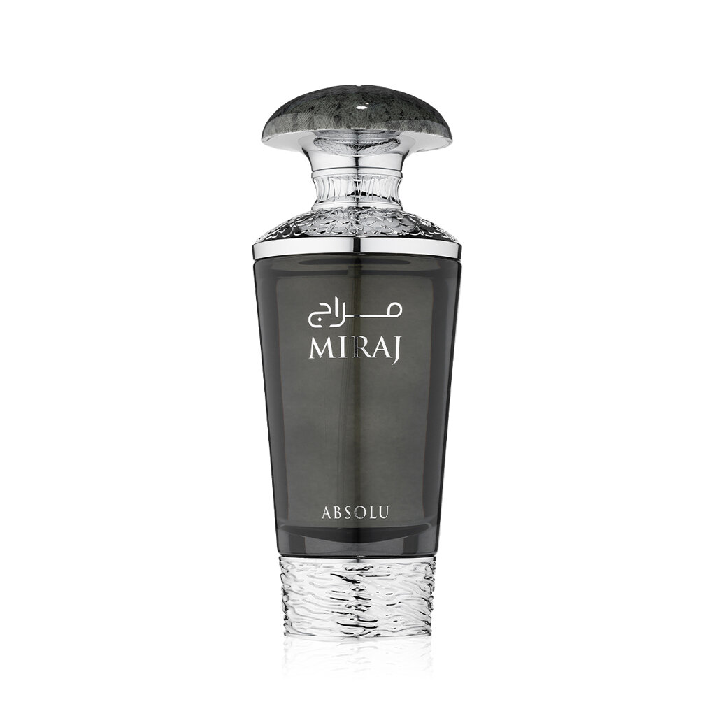 Baza jest ciemna, ciepła i długotrwała. Znajdziemy w niej słodką wanilię, ziemistą paczulę, nuty drzewne, tajemniczy oud, ziemisty mech dębowy, zmysłową ambrę, ale także intensywny akord kawy, który nadaje zapachowi smakowity i lekko gorzki kontrast. Podwójne pojawienie się różowego pieprzu zamyka kompozycję pikantnym blaskiem. Miraj Absolu to perfumy dla kobiet, które nie boją się być widoczne, czuć i pozostawiać głębokie wrażenie.