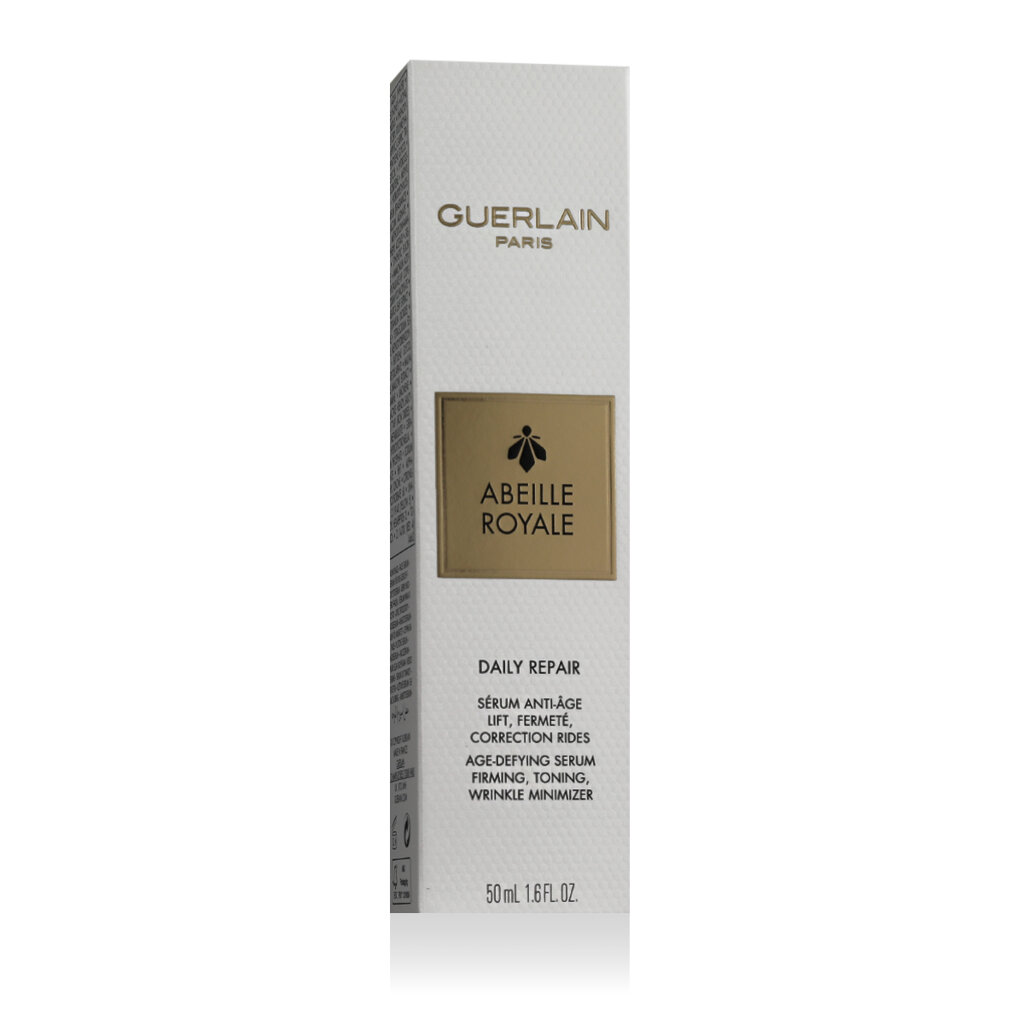 Guerlain Abeille Royale Daily Repair Serum 50 ml to luksusowe przeciwstarzeniowe serum naprawcze, które wspomaga odnowę skóry i wyraźnie poprawia jej jędrność i elastyczność. To przeciwstarzeniowe serum z miodem i produktami pszczelimi wykorzystuje moc naturalnych składników aktywnych, aby wygładzić zmarszczki, wzmocnić strukturę skóry i przywrócić jej młodzieńczy wygląd. Lekka, jedwabista konsystencja szybko się wchłania i pozostawia skórę promienną i jednolitą.