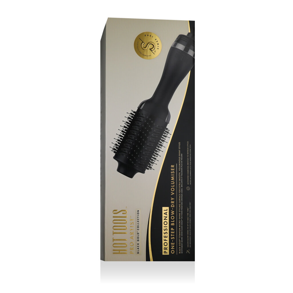 Hot Tools Professional VOLUMIZER Black Gold One-Step Blowout Styler to profesjonalna szczotka z gorącym powietrzem, która łączy suszenie i stylizację w jednym i ułatwia tworzenie obszernej, gładkiej i gładkiej fryzury zaraz po wyjęciu z suszarki. Została zaprojektowana, aby skrócić czas stylizacji i nadać włosom **salonowe wykończenie nawet w domu**, z błyszczącym, wolnym od puszenia się rezultatem.