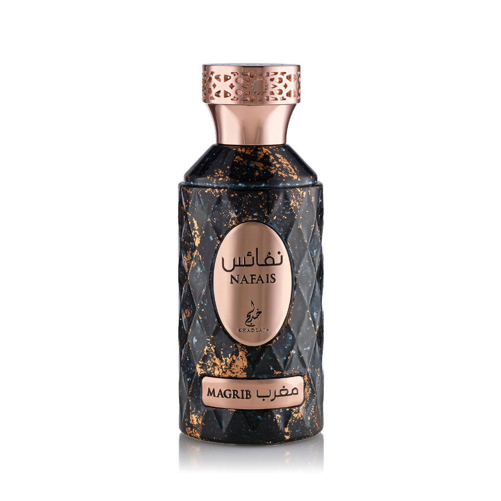 Nafais Magrib marki Khadlaj Perfumes to woda perfumowana z 2025 roku, która prezentuje orzeźwiające i nowoczesne podejście do cytrusowo-aromatycznego zapachu zarówno dla kobiet, jak i mężczyzn. Ta kompozycja unisex przypomina zapach ciepłego wieczoru po zachodzie słońca - czysty, lekki i jednocześnie energetyczny. Nafais Magrib jest idealny dla tych, którzy kochają musującą świeżość i przejrzystą elegancję bez zbędnej słodyczy.