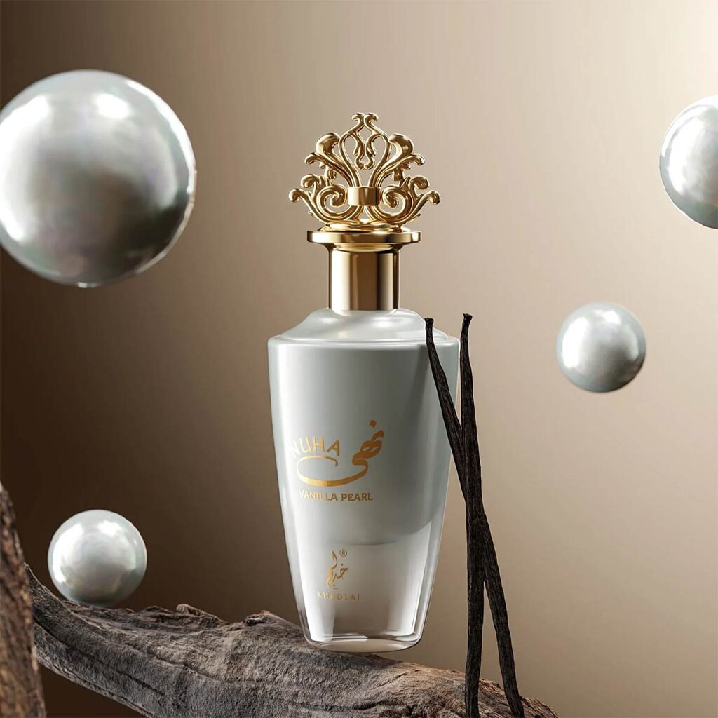 Nuha Vanilla Pearl marki Khadlaj Perfumes to kwiatowo-owocowo-gourmand perfumy dla kobiet, wprowadzone na rynek w 2025 roku. Zapach ten jest hołdem dla słodkiej kobiecości - miękkiej, kuszącej i nieodparcie delikatnej. Harmonijne połączenie soczystych owoców, kwiatowej elegancji i kremowo-słodkiej bazy tworzy perfumy, które są nowoczesnym ucieleśnieniem czułości i radości.
