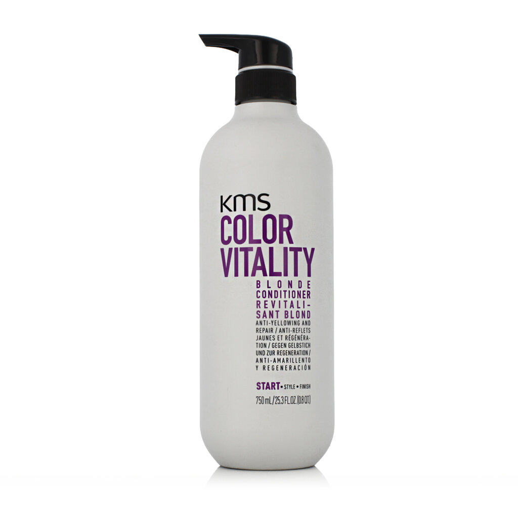 KMS Colorvitality Blonde Conditioner 750 ml to specjalna odżywka przeznaczona do pielęgnacji włosów blond, zapewniająca im łatwe rozczesywanie, głębokie odżywienie i ochronę. Odżywka chroni kolor przed blaknięciem, podkreśla chłodne odcienie i pomaga zachować promienny, nawilżony i zdrowy wygląd włosów.