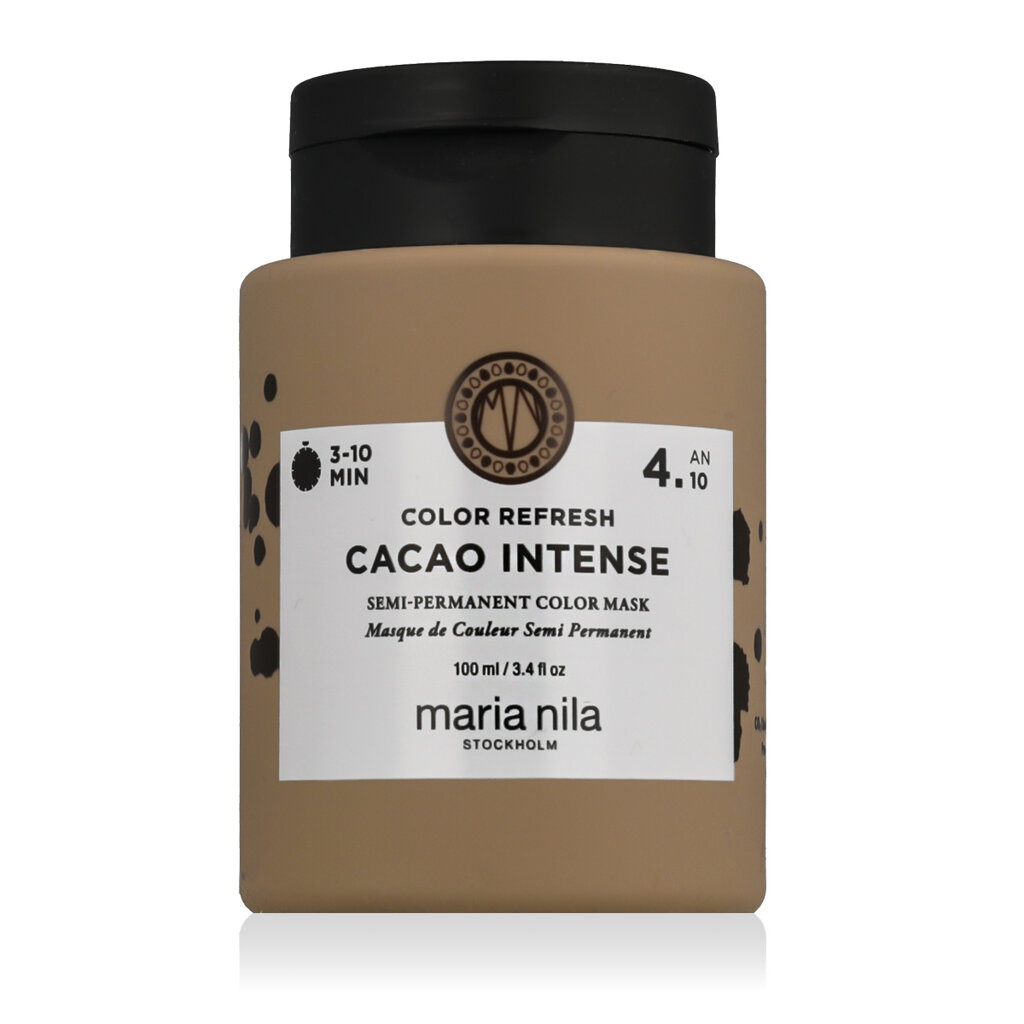 Maria Nila Colour Refresh Semi-permanent Hair Mask with Colour Pigments Cacao Intense 100 ml to odżywcza półtrwała maska do włosów, która nadaje głęboki, bogaty odcień ciemnego brązu, jednocześnie intensywnie pielęgnując włókna włosów. Odcień Cacao Intense jest idealny do przyciemniania naturalnego koloru, ożywiania włosów farbowanych lub tonowania do eleganckiego czekoladowego odcienia - bez trwałego zaangażowania lub uszkodzenia włosów.