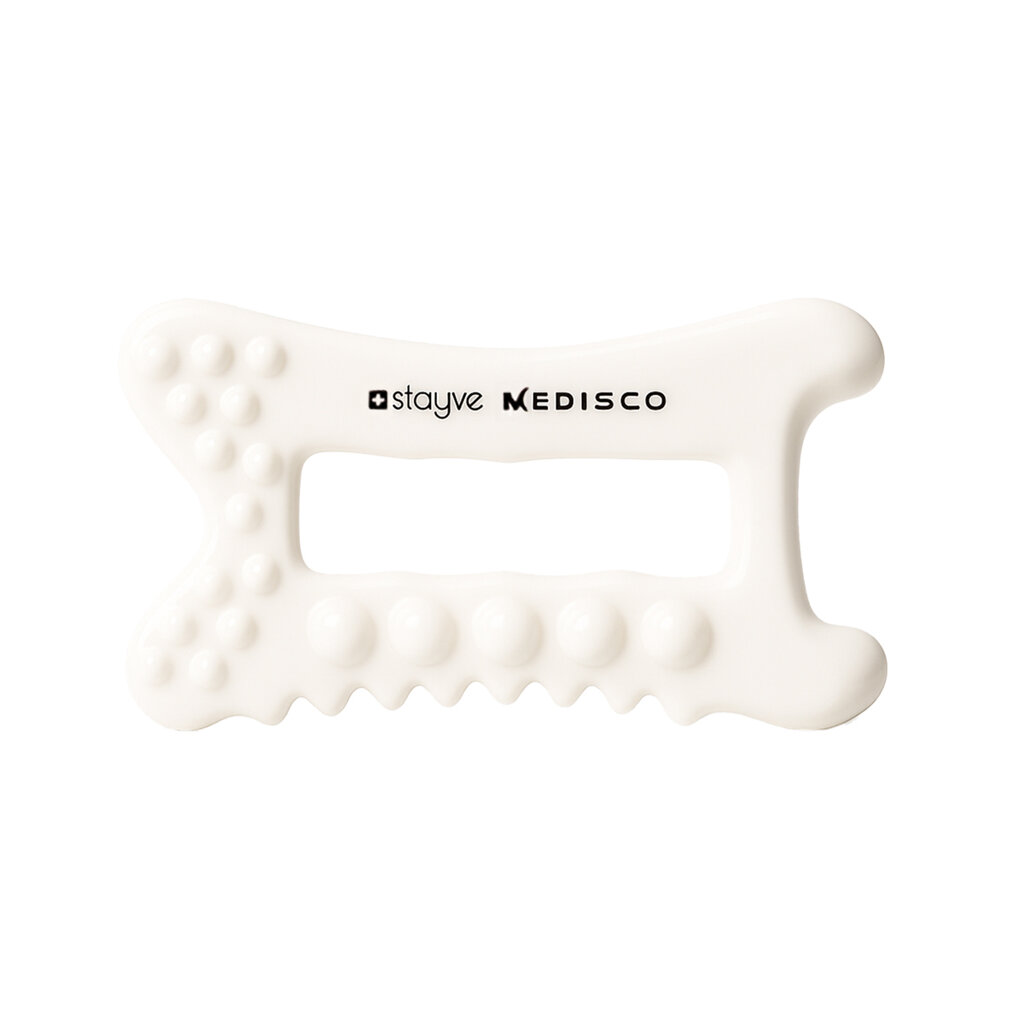 Medisco Peelieve All-In-One Gua Sha (1 szt.) to wszechstronne narzędzie do masażu kamieniami przeznaczone do technik gua sha, które promują drenaż limfatyczny, poprawiają mikrokrążenie i pomagają złagodzić napięcie na twarzy i szyi. Został zaprojektowany tak, aby obejmować różne kąty i obszary twarzy i może być stosowany zarówno w zabiegach klinicznych, jak i domowych, aby promować ogólny efekt zabiegów kosmetycznych.