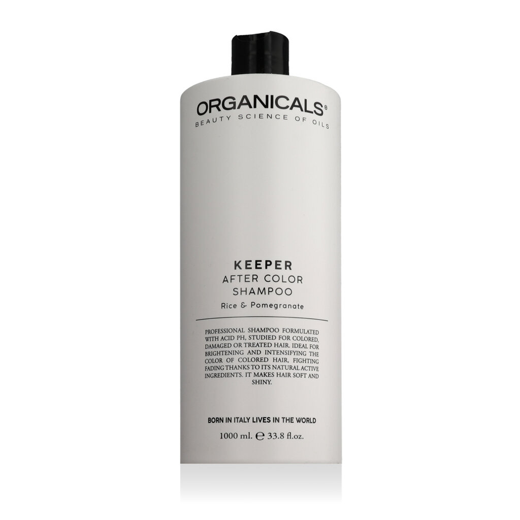 Organicals® KEEPER After Color Shampoo - szampon do włosów farbowanych w dużym opakowaniu 1000 ml przeznaczony jest do delikatnego, ale dokładnego mycia włosów poddawanych zabiegom chemicznym i farbowanych, jednocześnie pomagając chronić i przedłużyć intensywność koloru. Zawiera naturalne ekstrakty i składniki nawilżające, które koją skórę głowy, jednocześnie wzmacniając włókno włosa. Odpowiedni do codziennego użytku.