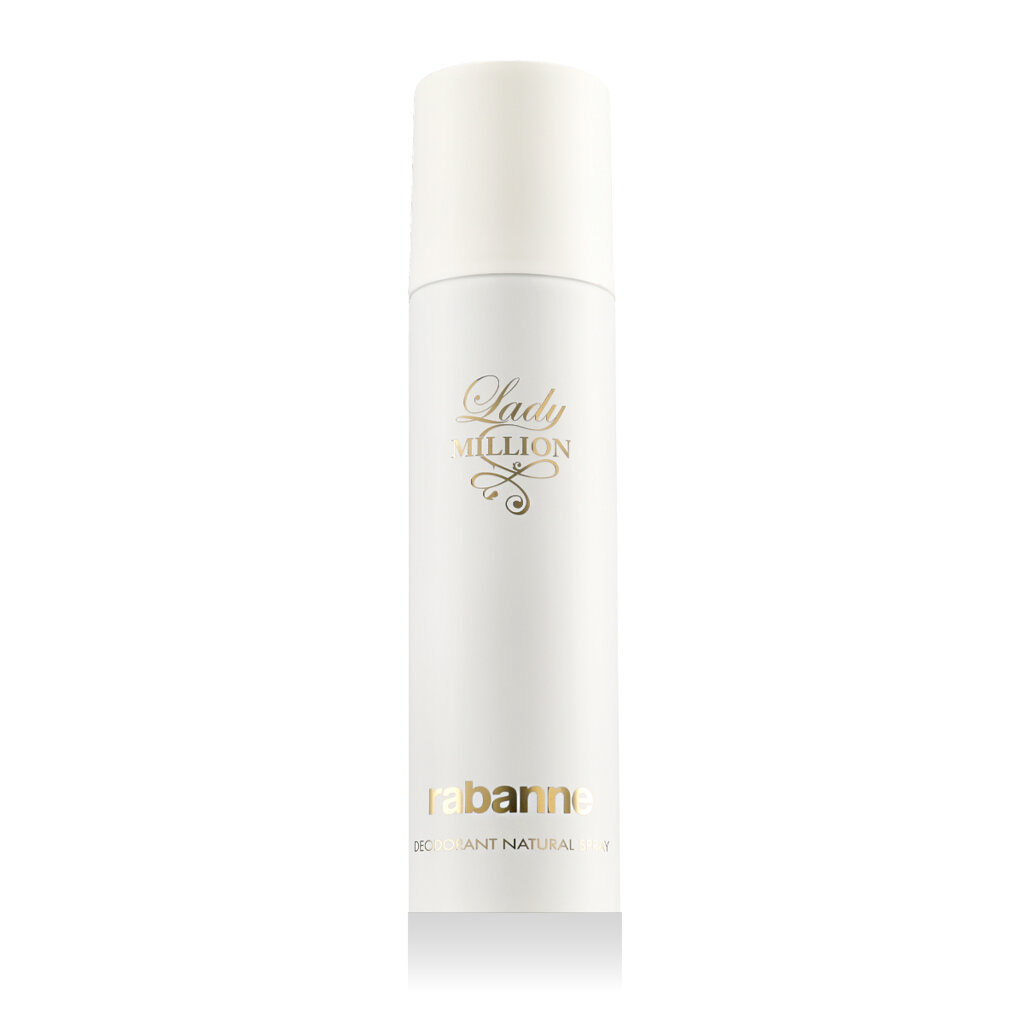 Rabanne Lady Million DEO Spray - dezodorant w sprayu dla kobiet o kultowym zapachu zapewnia 150 ml luksusowej pielęgnacji, która łączy skuteczną ochronę antyperspirantu z eleganckimi i zmysłowymi perfumami popularnego zapachu Lady Million. Ten dezodorant jest idealny dla kobiet, które chcą zachować świeżość, jednocześnie otulając się złotym welonem zapachu z nutami neroli, kwiatu pomarańczy, jaśminu i paczuli. Doskonałe uzupełnienie perfum lub balsamu do ciała z tej samej serii.