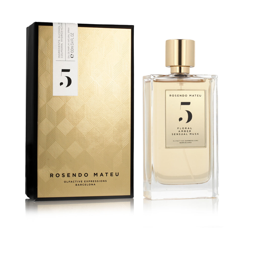Rosendo Mateu Nº 5 Floral, Amber, Sensual Musk marki Rosendo Mateu Olfactive Expressions to orientalno-kwiatowe perfumy dla kobiet i mężczyzn, wprowadzone na rynek w 2017 roku. Stworzone przez mistrza perfumiarstwa Rosendo Mateu, perfumy te są elegancką i zmysłową mieszanką, która łączy egzotyczne akordy kwiatowe z ciepłymi i zmysłowymi nutami bursztynu i piżma.