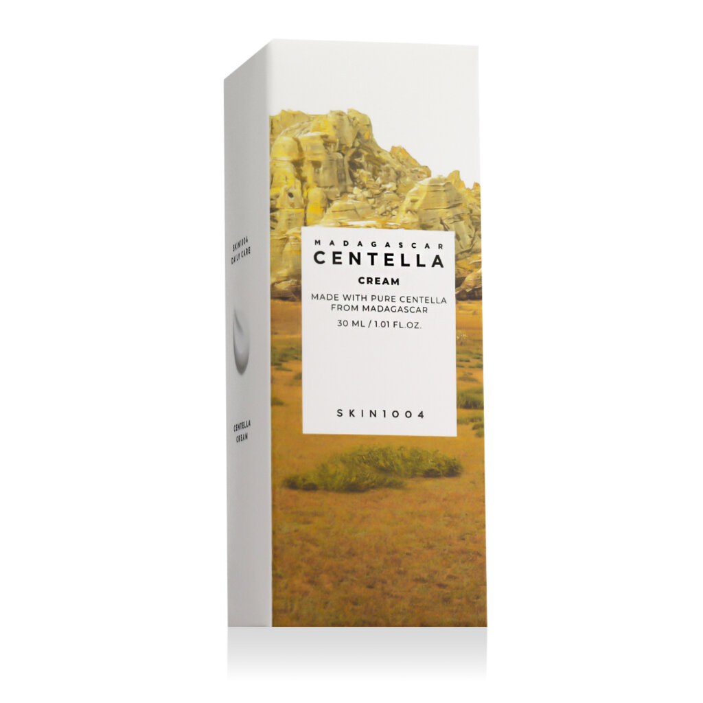 SKIN1004 Madagascar Centella Cream 30 ml to lekki, łagodzący i nawilżający mleczno-żelowy zabieg pielęgnacyjny na bazie ekstraktów z wąkrotki azjatyckiej, który pomaga wzmocnić barierę skórną, zmniejszyć zaczerwienienia i zapewnić komfort nawet wrażliwej skórze.