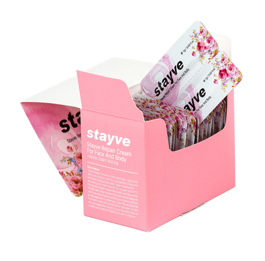 Stayve Repair Cream to leczniczy krem do pielęgnacji skóry po mezoterapii lub BB GLOW. Krem został zaprojektowany, aby leczyć i rewitalizować podrażnioną skórę po zabiegach laserowych i mezoterapii.