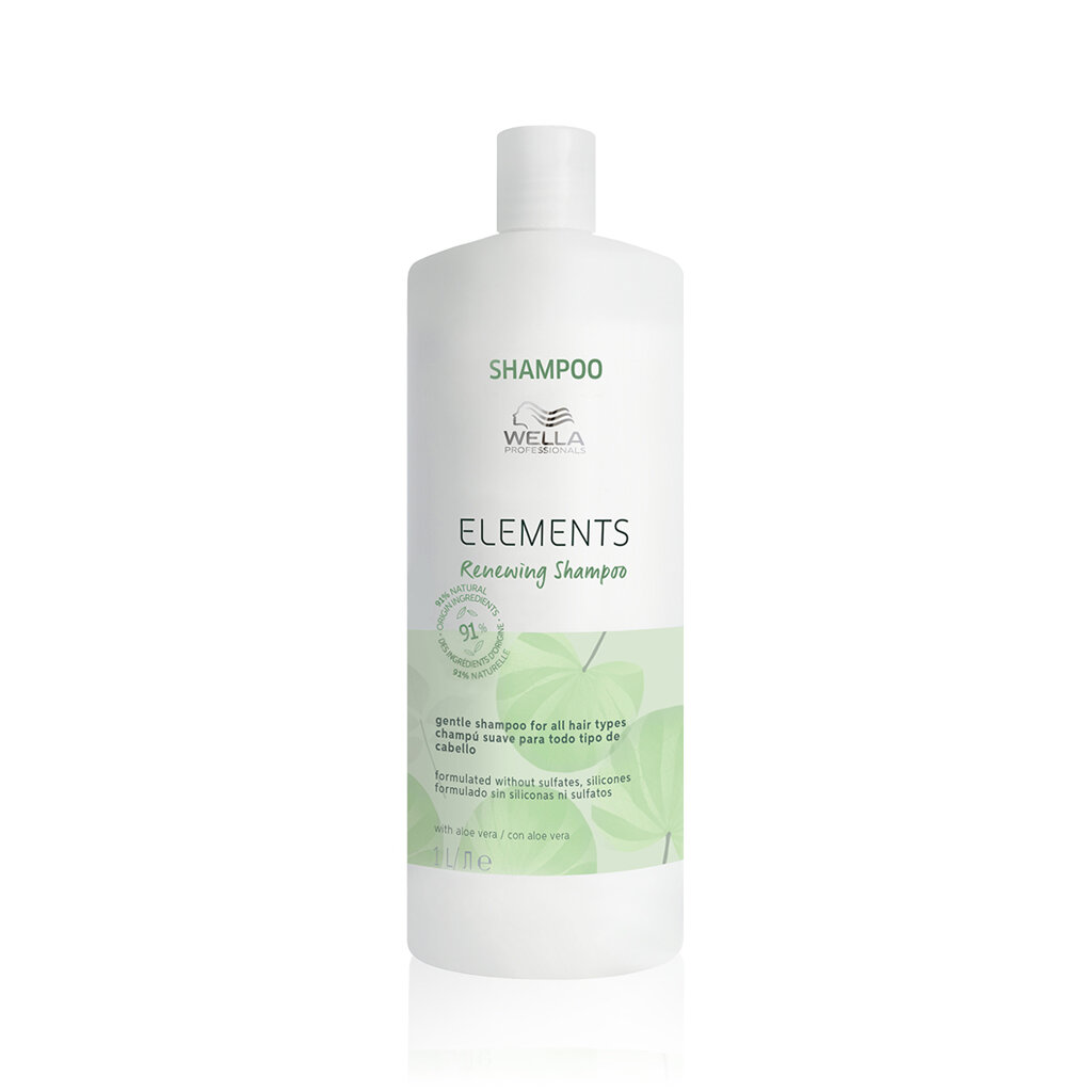 Elements Renewing Shampoo marki Wella Professionals to delikatny szampon nawilżający bez siarczanów i silikonów, opracowany z myślą o włosach zniszczonych i osłabionych. Delikatnie oczyszcza włosy i skórę głowy, jednocześnie przywracając im witalność. Zawiera naturalne składniki, takie jak aloes i esencje roślinne, wspomaga naturalne nawilżenie, wzmacnia włókna włosów i pomaga chronić je przed dalszymi uszkodzeniami.